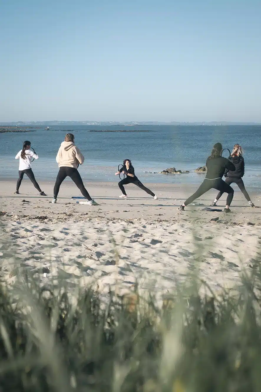 Prenez une tenue confortable, une bouteille d’eau au cas où et une serviette. Si la séance se passe sur la plage, pensez à prendre un chapeau, lunettes de soleil et crème solaire.